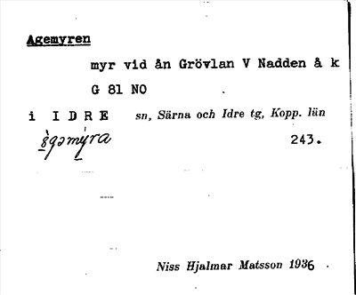 Idre sn, Särna och Idre tg, Kopparbergs län, Dalarna