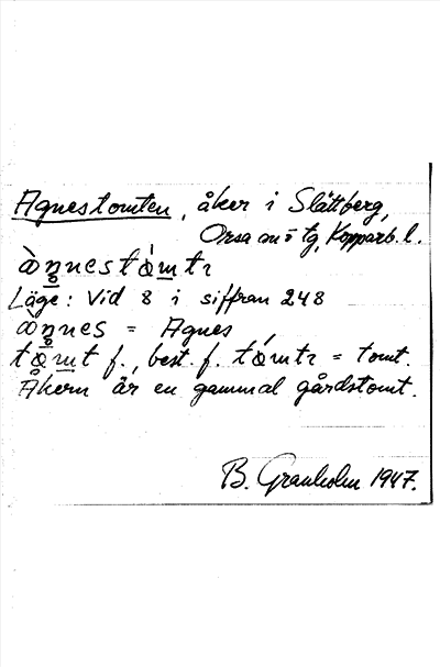 Information om ortnamnet Agnestomten