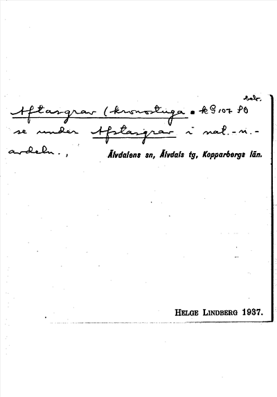 Information om ortnamnet Aftasgrav kronostuga