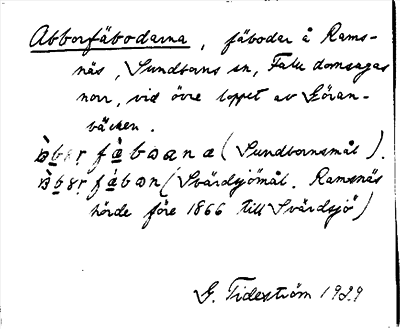 Information om ortnamnet Abborrfäbodarna