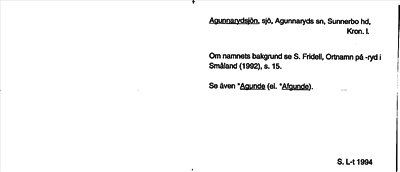 Information om ortnamnet Agunnarydsjön