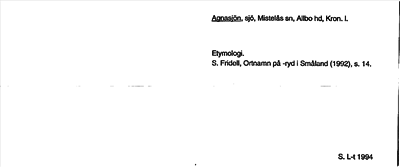 Information om ortnamnet Agnasjön