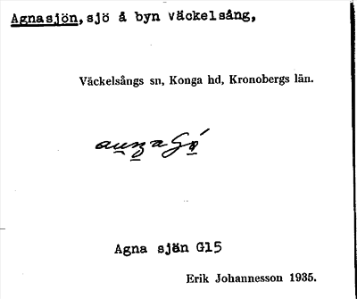 Information om ortnamnet Agnasjön