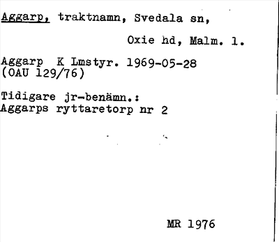 Information om ortnamnet Aggarp