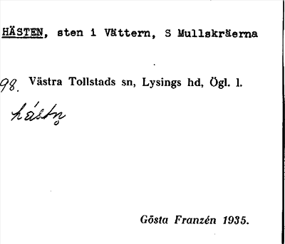 Information om ortnamnet Hästen