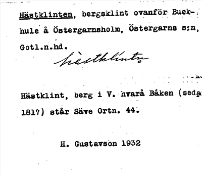 Information om ortnamnet Hästklinten