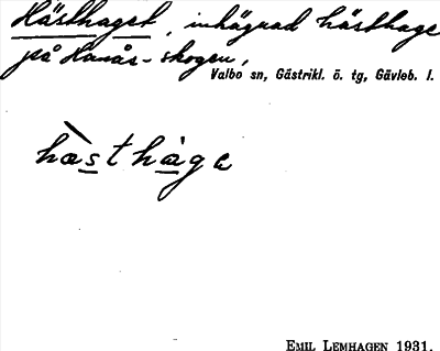 Information om ortnamnet Hästhaget