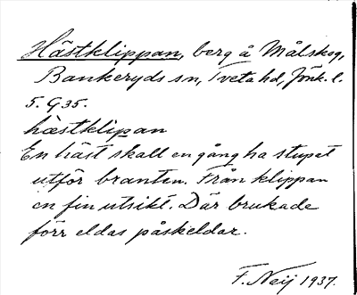 Information om ortnamnet Hästklippan