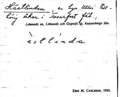 Information om ortnamnet Hästlinden