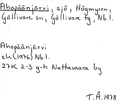 Information om ortnamnet Ahopäänjärvi
