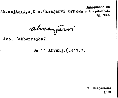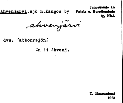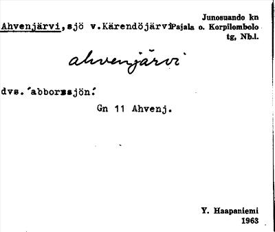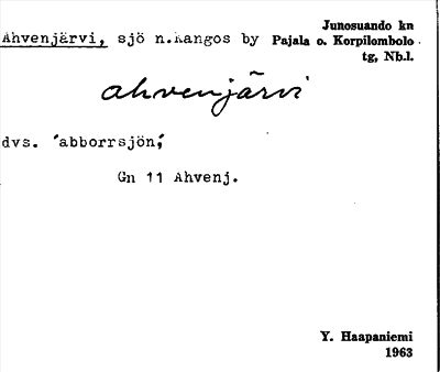 Information om ortnamnet Ahvenjärvi