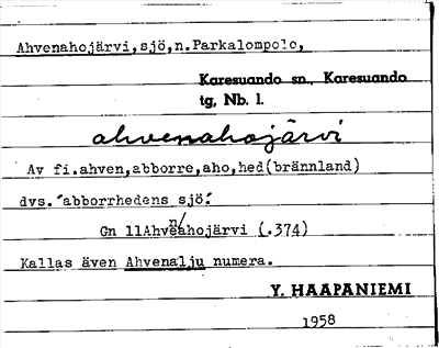 Information om ortnamnet Ahvenahojärvi