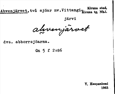 Information om ortnamnet Ahvenjärvet