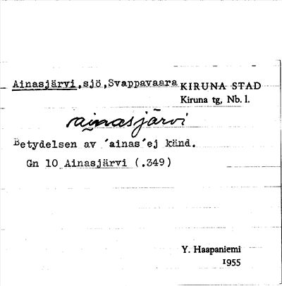 Information om ortnamnet Ainasjärvi