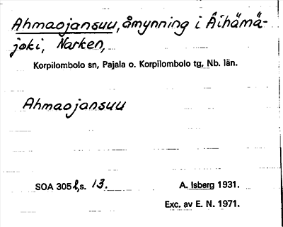 Information om ortnamnet Ahmaojansuu