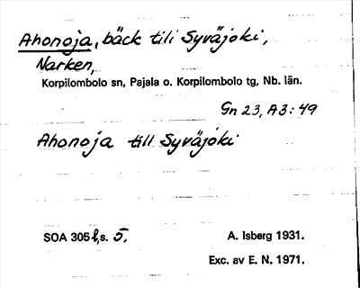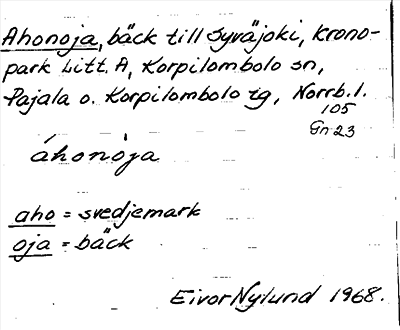 Information om ortnamnet Ahonoja