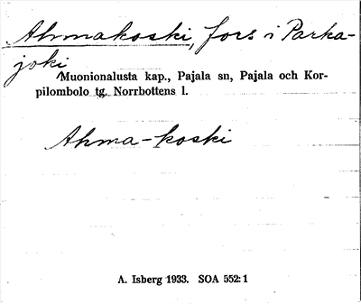 Information om ortnamnet Ahmakoski