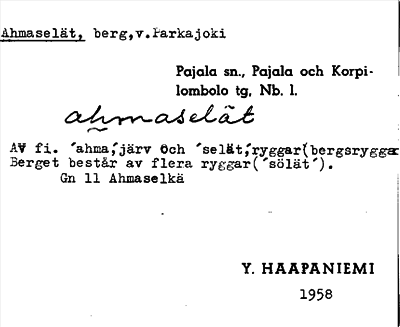 Information om ortnamnet Ahmaselät