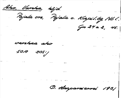 Information om Aho, Vanha