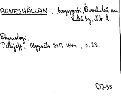 Information om ortnamnet Agneshällan