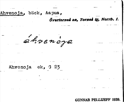 Information om ortnamnet Ahvenoja