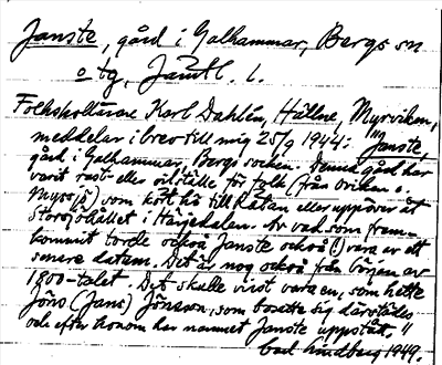 Information om ortnamnet Janste