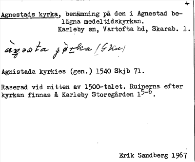 Information om ortnamnet Agnestads kyrka