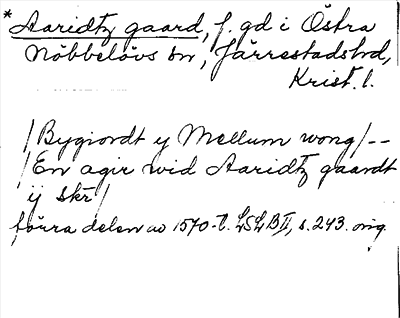 Information om ortnamnet Aaridtz gaard