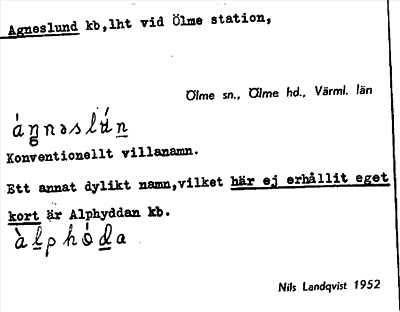 Information om ortnamnet Agneslund