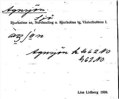 Information om ortnamnet Agnsjön