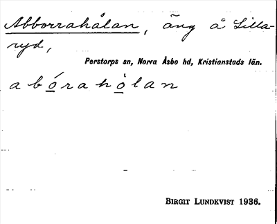 Information om ortnamnet Abborrahålan