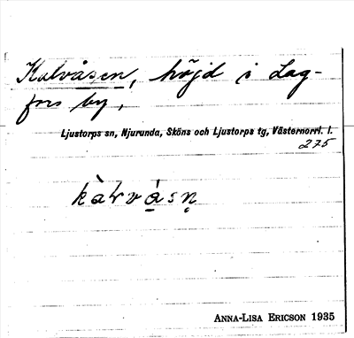 Information om arkivposten Kalvåsen