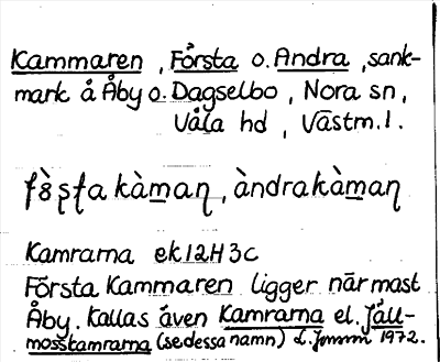 Information om ortnamnet Kammaren, Första o. Andra