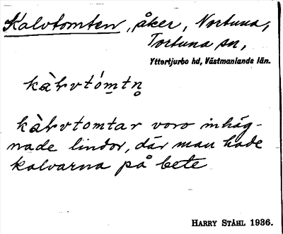 Information om ortnamnet Kalvtomten
