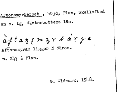 Information om ortnamnet Aftonsmyrberget