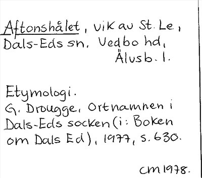 Information om ortnamnet Aftonshålet