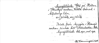 Information om ortnamnet Agnsjöbäck