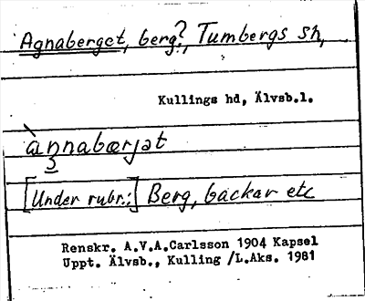 Information om ortnamnet Agnaberget