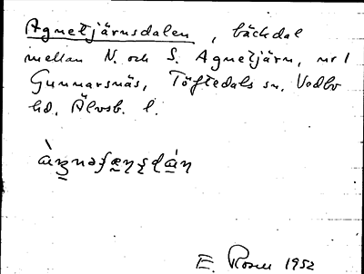 Information om ortnamnet Agnetjärnsdalen