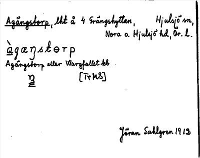Information om ortnamnet Agängstorp