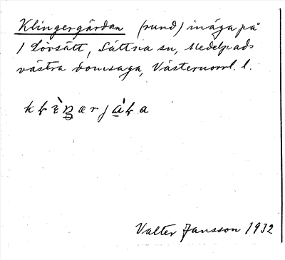 Information om arkivposten Klingergärdan