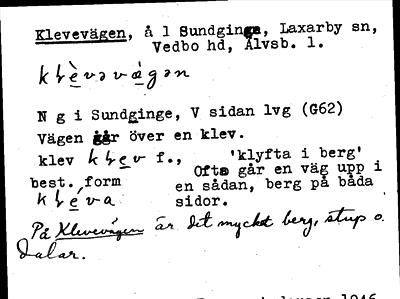 Information om ortnamnet Klevevägen