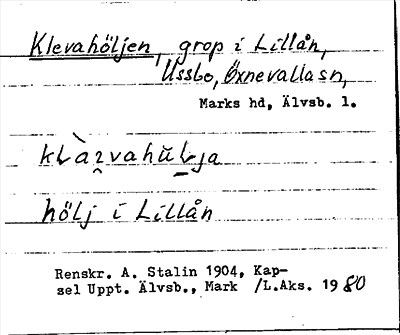 Information om ortnamnet Klevahöljen