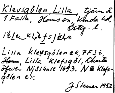 Information om ortnamnet Klevsgölen, Lilla