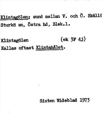 Information om ortnamnet Klintagölen