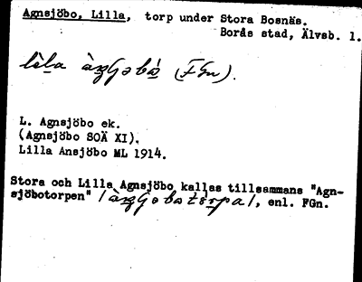 Information om ortnamnet Agnsjöbo, Lilla